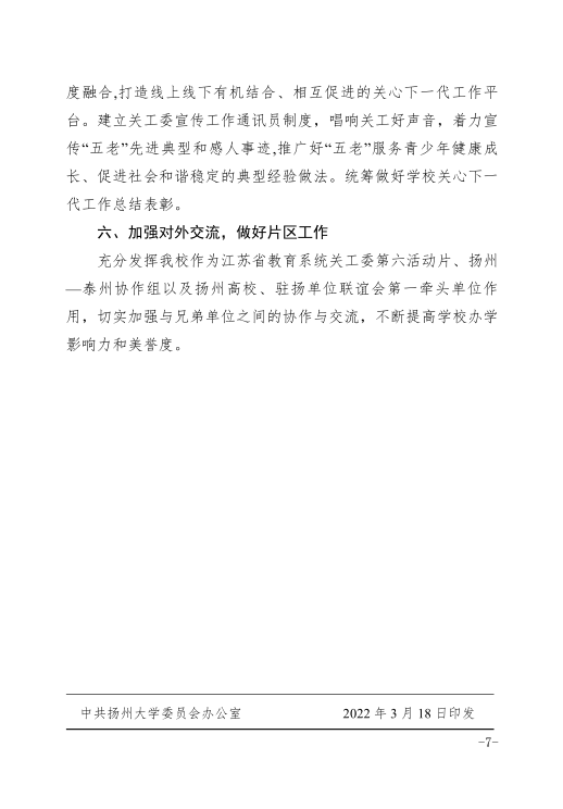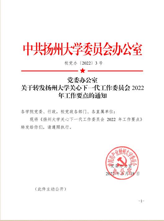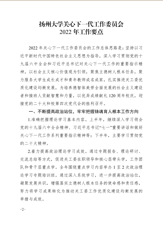 党委办公室关于转发扬州大学关心下一代工作委员会2022年工作要点的通知