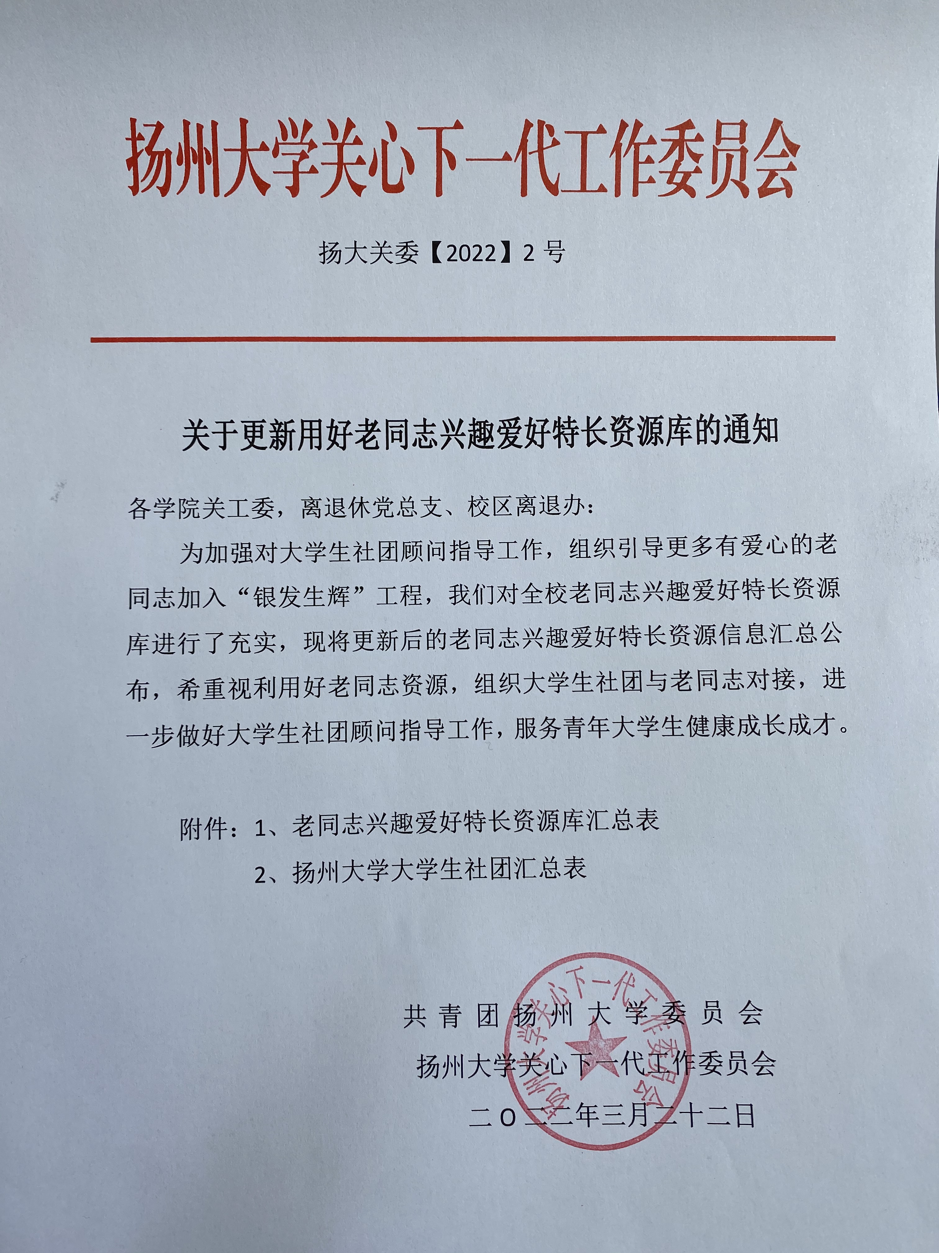 关于更新用好老同志兴趣爱好特长资源库的通知