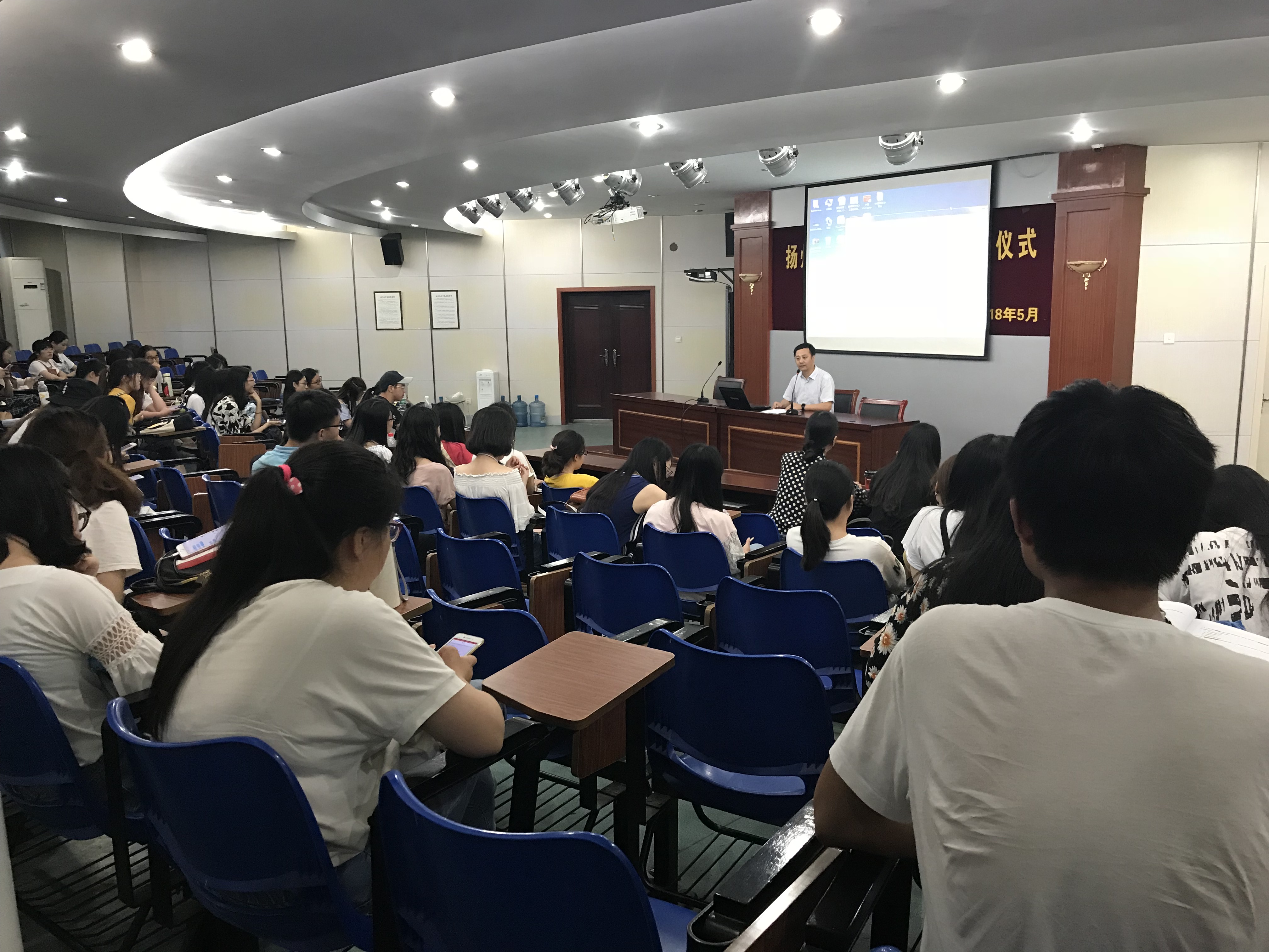 6月6日下午4:30,院关工委共建班级翻译1401、1402在笃行楼报告厅举行“奋斗青春、感恩六月”考研、就业经验交流会。来自14级翻译班的8位升学出国学生代表及6位就职就业的学生先后向学弟学妹们讲述了自己在考研、就业或申请出国深造过程中的心路历程,一同分享宝贵经验与奋斗感悟。学院关工委主任崔益军、副院长缪海涛、翻译系副主任毛澄怡出席本次活动,关工委执行秘书孙月、15级及16级翻译班、17级英语系全体同学参加。